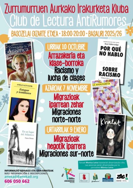 Hora localZona horaria: America/New_YorkFecha: Oct 10 2025 - Ene 09 2026Hora: 12:00 - 14:00 CategoríaClub de Lectura FechaOct 10 2025 - Ene 09 2026En marcha... Hora 18:00 - 20:00Club de lectura antiRumores en BasauriCompartir este evento